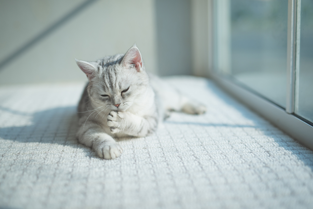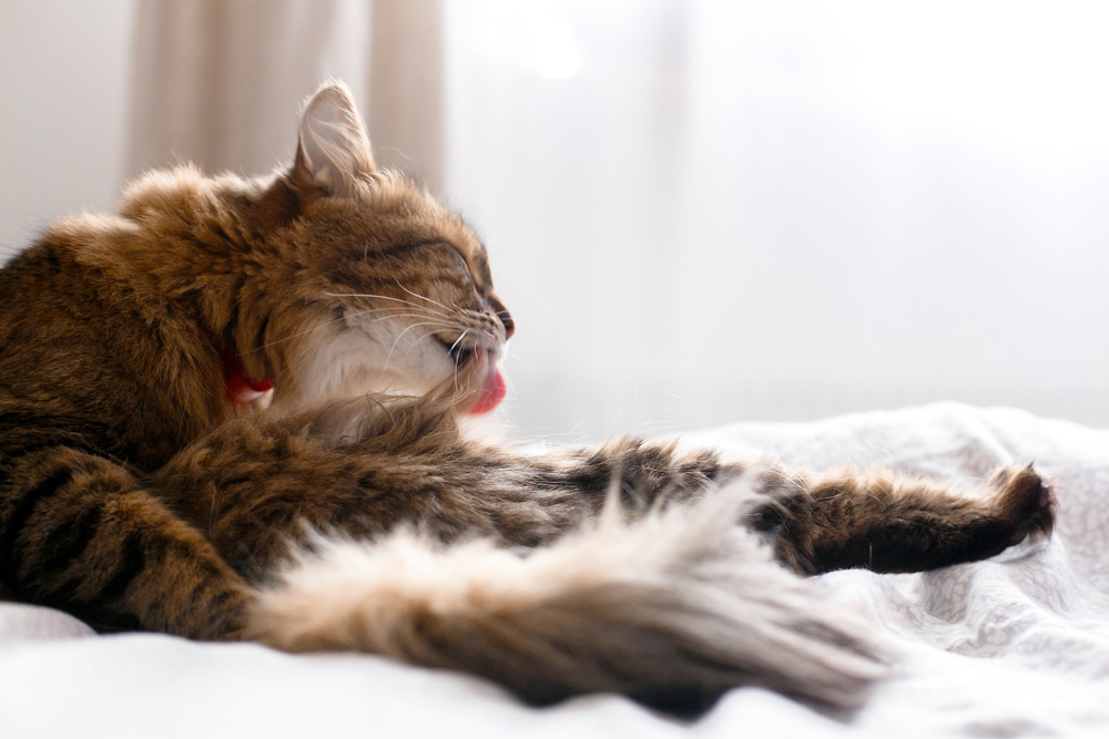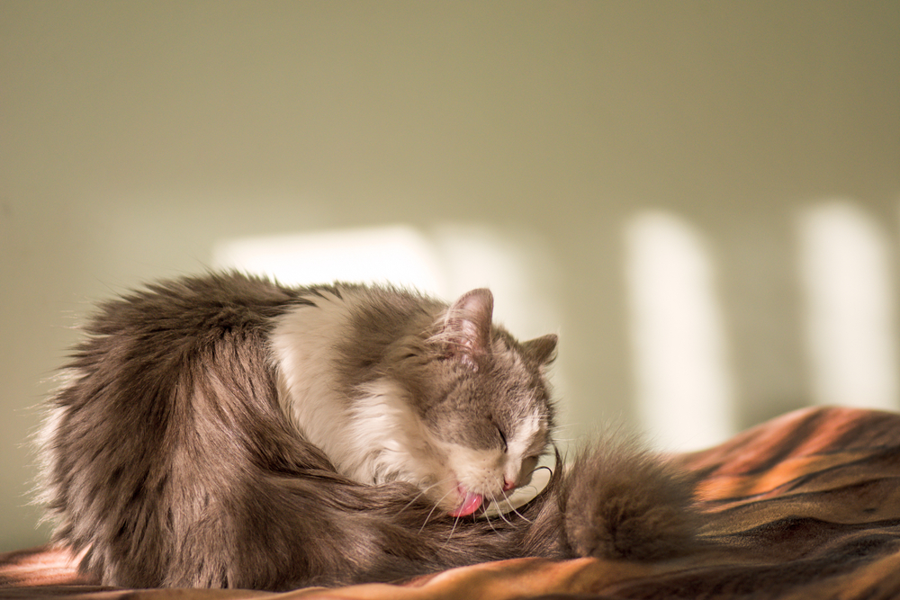 - 舔毛發生在可預測的時間(飯後、睡醒、玩耍後)