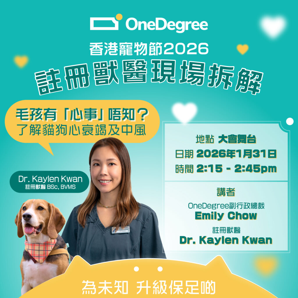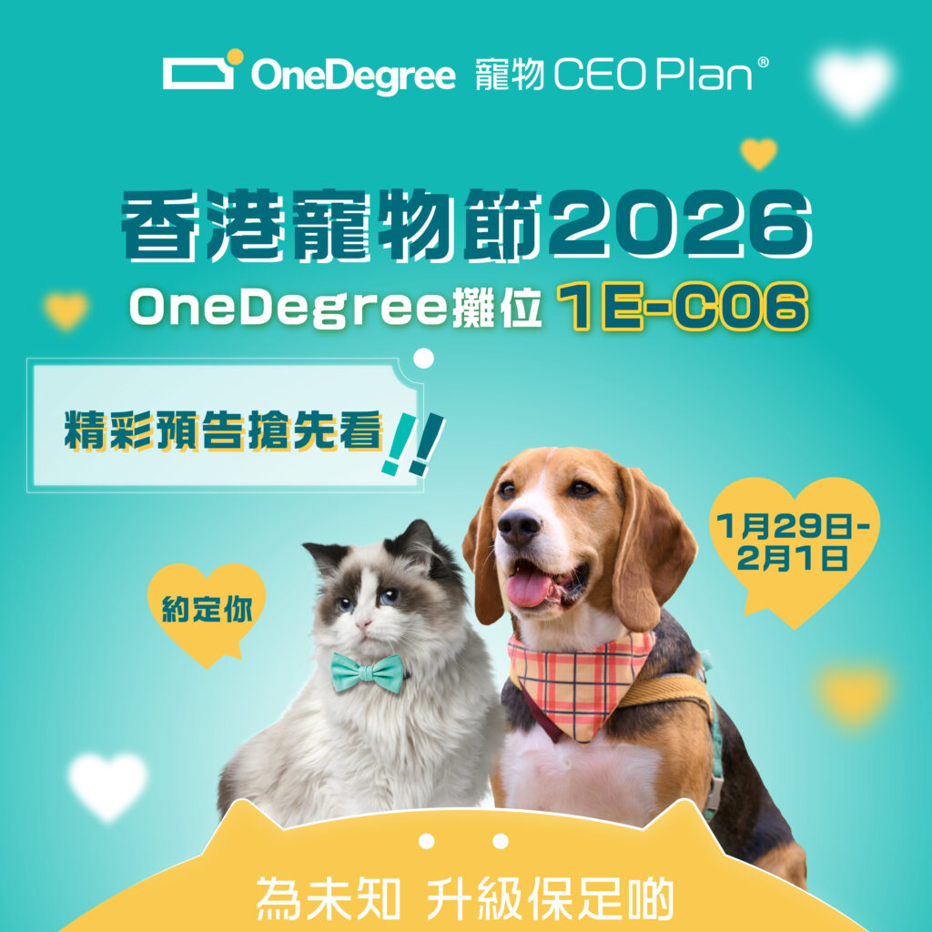 無論你是想為毛孩尋找升級保障,還是想聽取獸醫專業意見,OneDegree 攤位(1E-C06) 絕對是今年寵物節的必去熱點。